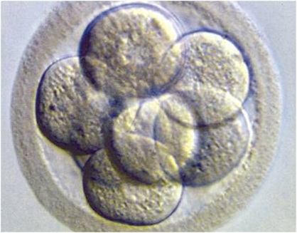 Both of our embryos were similar to the early blastocyst stage as seen here. Once in Jenn's uterus, they should continue to expand until they "hatch" and implant themselves. This should have happened later the night of transfer or the next morning (yes, it's that fast!).